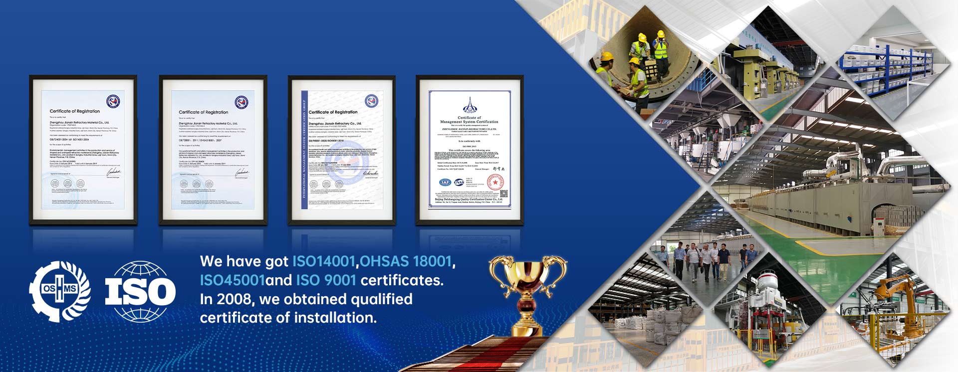 公司致力于耐火新材料、新技術、新產(chǎn)品的開發(fā)和推廣應用,是國家高新技術企業(yè),產(chǎn)品先后通過了ISO9001質(zhì)量管理體系、ISO14001環(huán)境管理體系、GB/T28001職業(yè)健康安全管理體系認證,同時具有防水防腐保溫工程專業(yè)承包貳級資質(zhì)、冶金工程施工總承包叁級資質(zhì)、環(huán)保工程專業(yè)承包叁級資質(zhì)。